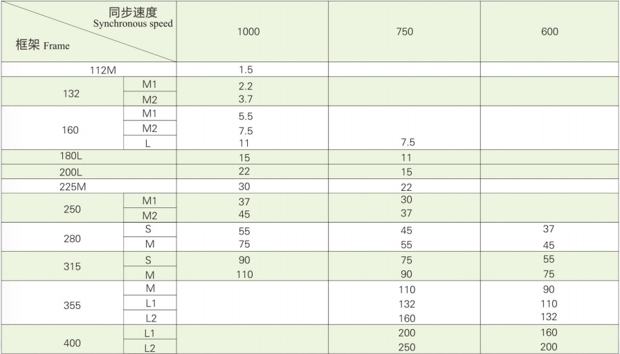 基本負(fù)載類型(S,40%)的額定輸出和同步速度范圍如表1所示。(籠式電機(jī)制造,粗線塊規(guī)格)表(2)