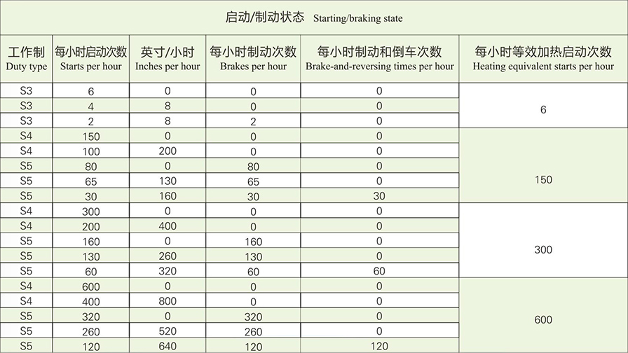 2.3在選擇電機(jī)時(shí),需要將不同類型的起動(dòng)和制動(dòng)狀態(tài)根據(jù)等效關(guān)系減少為等效起動(dòng)次數(shù)。然后將其用于確定電動(dòng)機(jī)的額定值。表4給出了一個(gè)典型的簡(jiǎn)化示例。