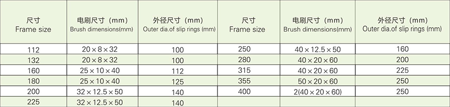 3.8電刷類型為)201,其規(guī)格見表7
