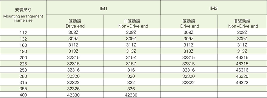 3.6驅(qū)動(dòng)類型:電機(jī)設(shè)計(jì)用于聯(lián)軸器或正齒輪驅(qū)動(dòng)。使用正齒輪傳動(dòng)時(shí),小齒輪的節(jié)距直徑不應(yīng)小于軸延伸部分的兩倍