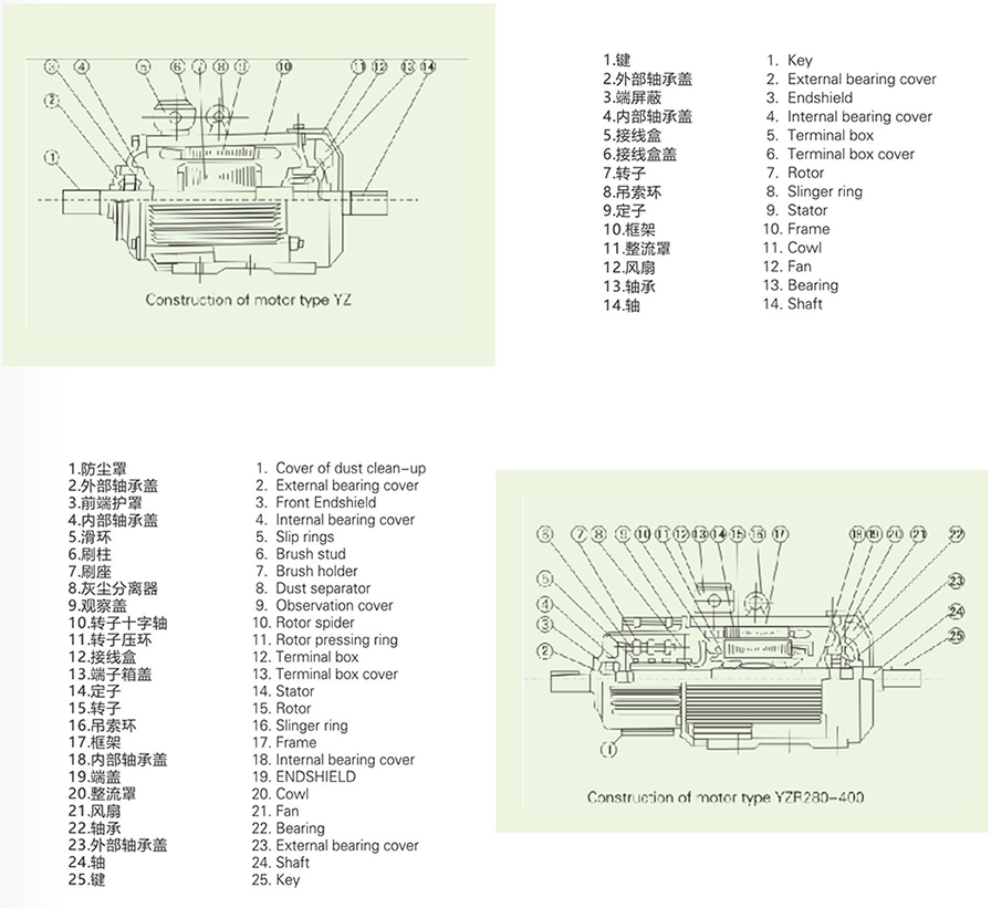 1.1 YZR和YZ系列是最新的設(shè)計(jì),具有大過載能力和高機(jī)械強(qiáng)度,特別適合驅(qū)動(dòng)各種類型的冶金機(jī)械和起重機(jī)和/或其他類似設(shè)備。YZR系列為繞線轉(zhuǎn)子電機(jī),YZ系列為籠型電機(jī)。