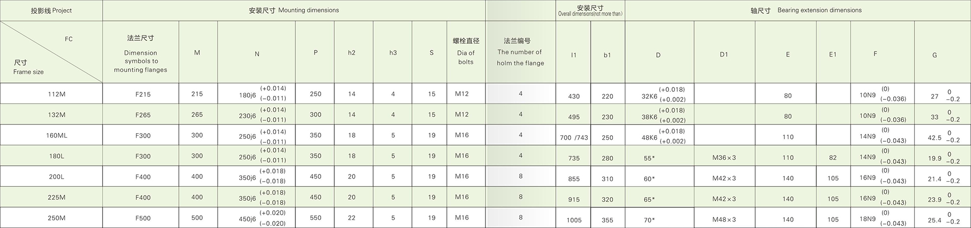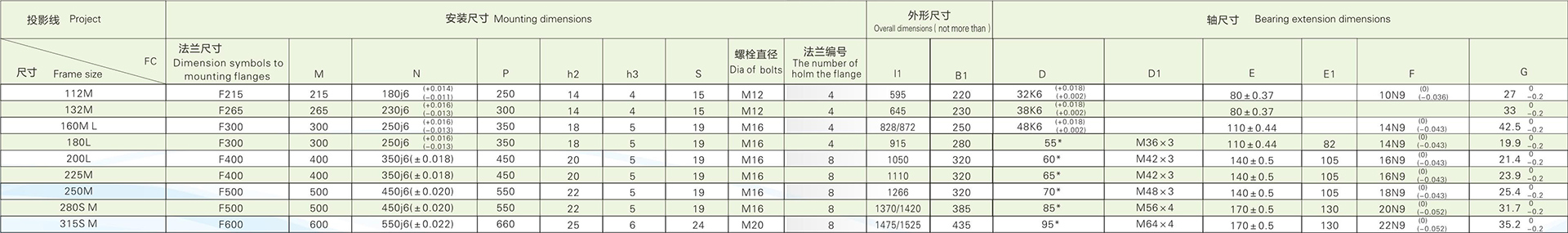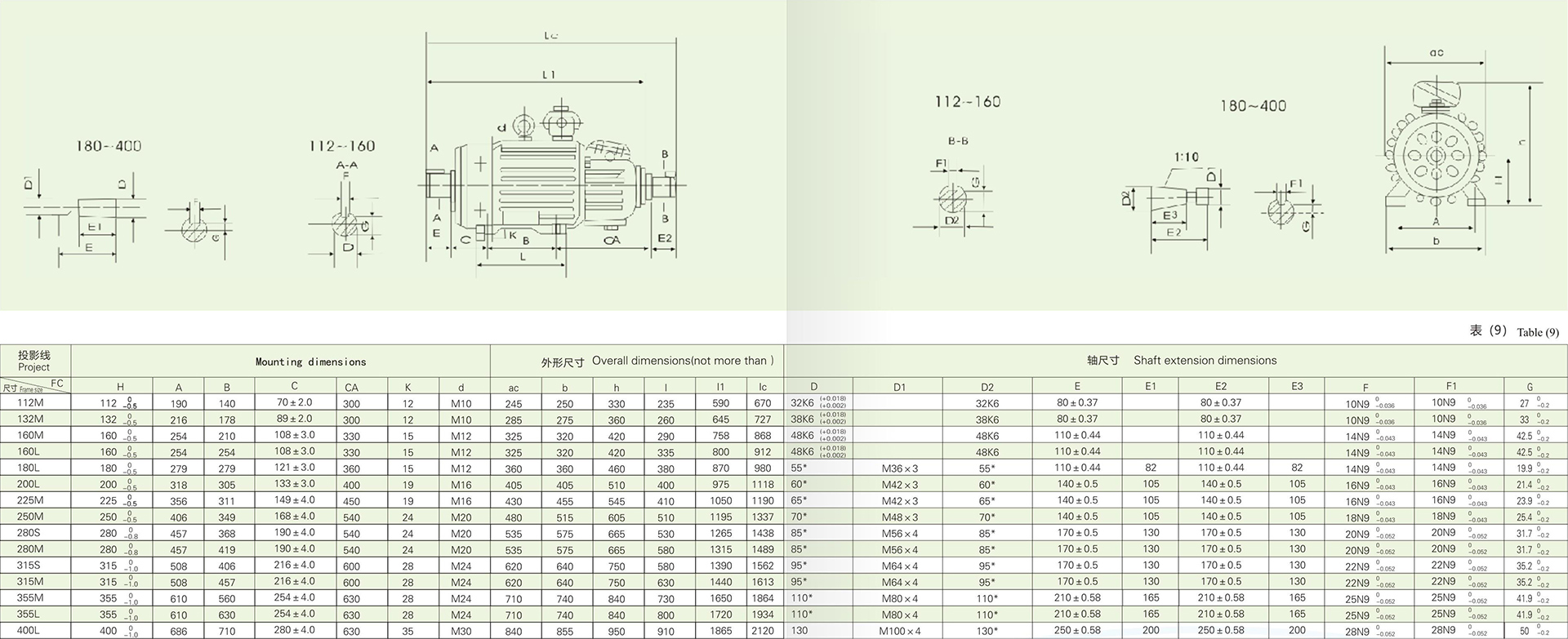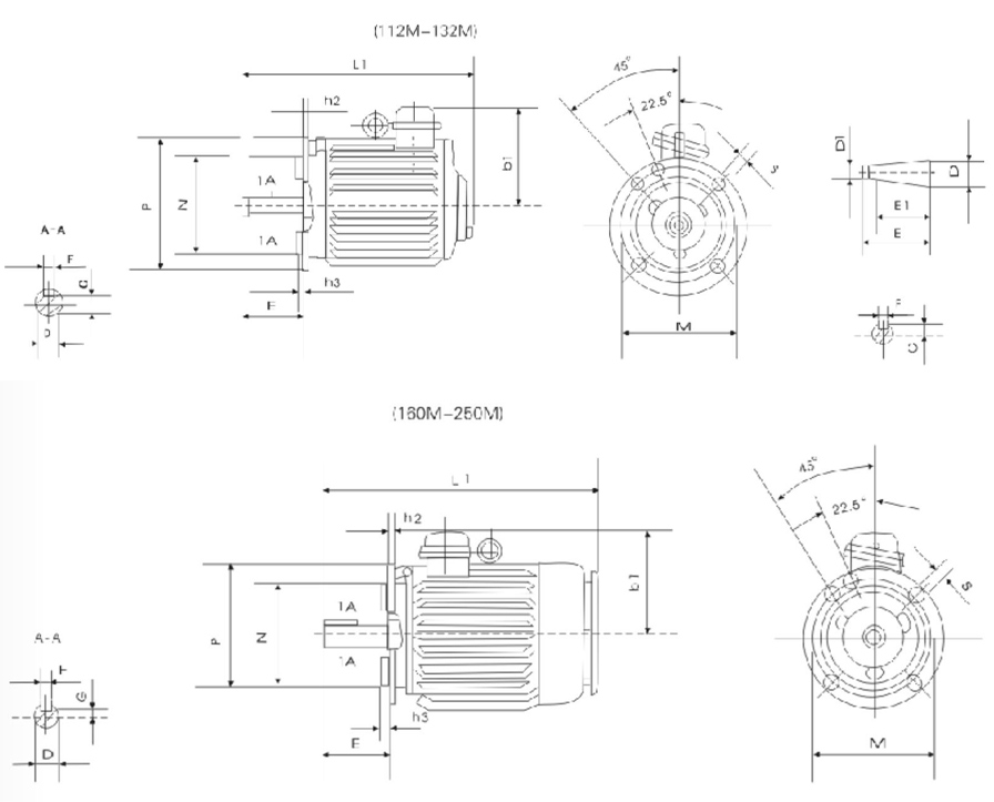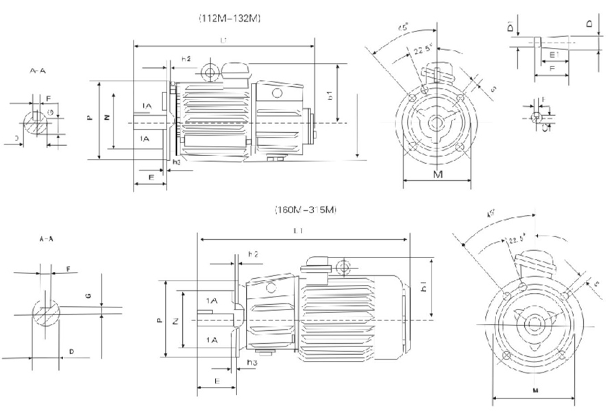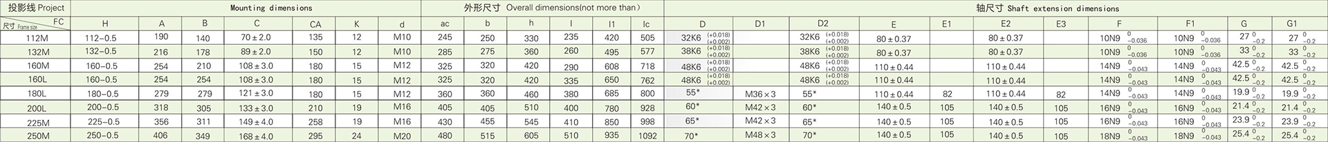4.2YZIM112-250的總體安裝尺寸見表10