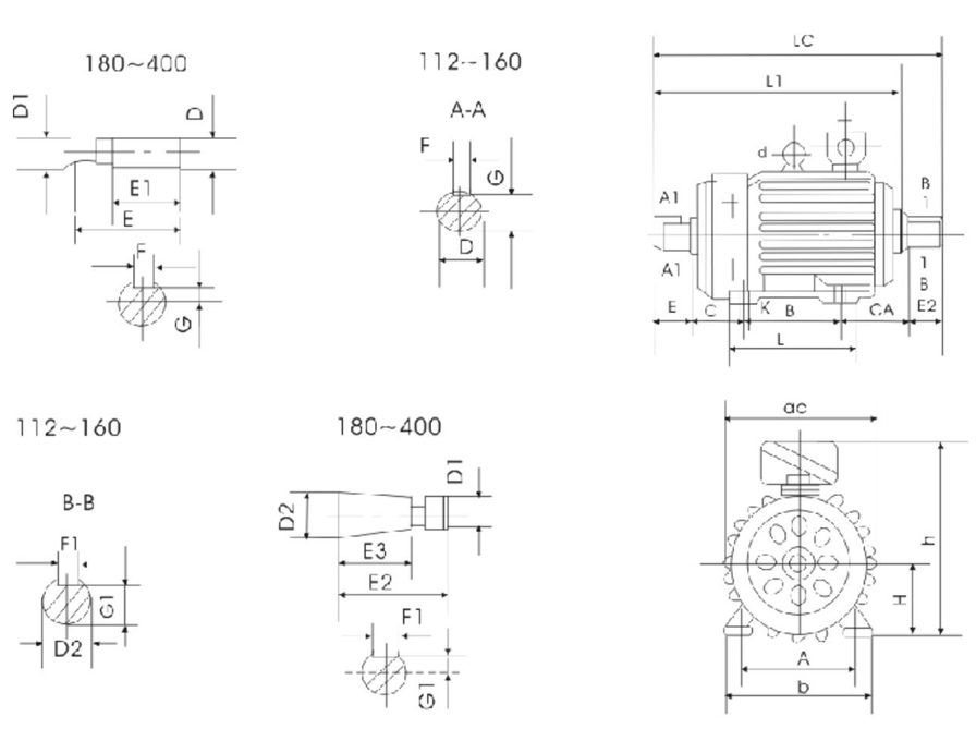 3.7定子的接線盒安裝在機(jī)架的頂部,可以在機(jī)架的兩側(cè)進(jìn)行連接。對(duì)于轉(zhuǎn)子。可以在蓋子的任一側(cè)進(jìn)行連接
