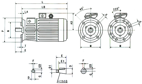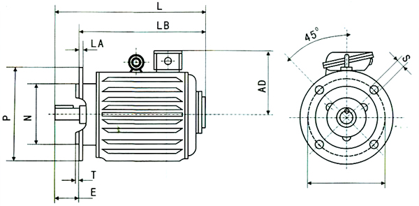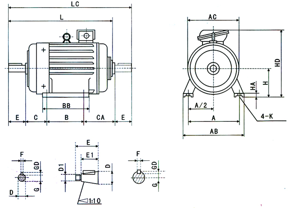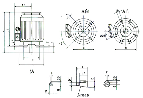 3.6驅動類型:電機設計用于聯軸器或正齒輪驅動。使用正齒輪傳動時,小齒輪的節距直徑不應小于軸延伸部分的兩倍
