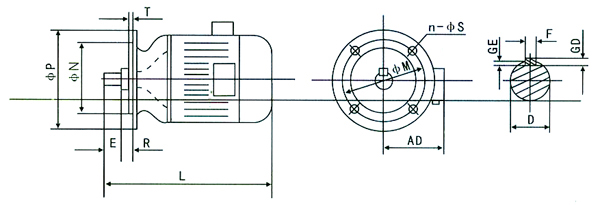 3.6驅動類型:電機設計用于聯軸器或正齒輪驅動。使用正齒輪傳動時,小齒輪的節距直徑不應小于軸延伸部分的兩倍